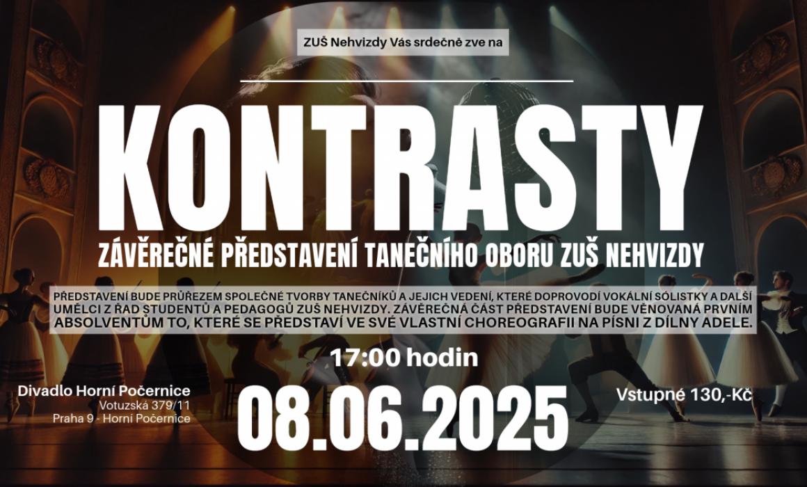Kontrasty mají v umění zásadní význam, vytvářejí napětí, drama a emoce, neboť v protikladech lze nalézt zamyšlení, hloubku, lehkost, napětí, výtvarnost a krásu. Závěrečné představení TO nabídne různé pohybové příběhy, ztvárněné na hudební podklady A. Dvořáka, H. Zimmera a dalších skladatelů a odlišné taneční styly, např. tance lidové či choreografie s využitím výrazových a pohybových prostředků techniky moderního tance. Představení bude průřezem společné tvorby tanečníků a jejich vedení, které doprovodí vokální sólistky a další umělci z řad studentů a pedagogů ZUŠ Nehvizdy. Závěrečná část představení bude věnovaná prvním absolventům TO, které se představí ve své vlastní choreografii na písni z dílny Adele.
