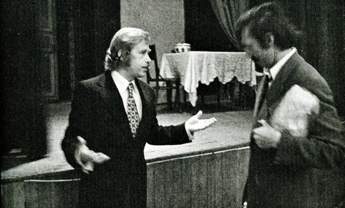 Zahájení výstavy fotografií, které autor pořídil na premiéře Žebrácké opery v roce 1975.