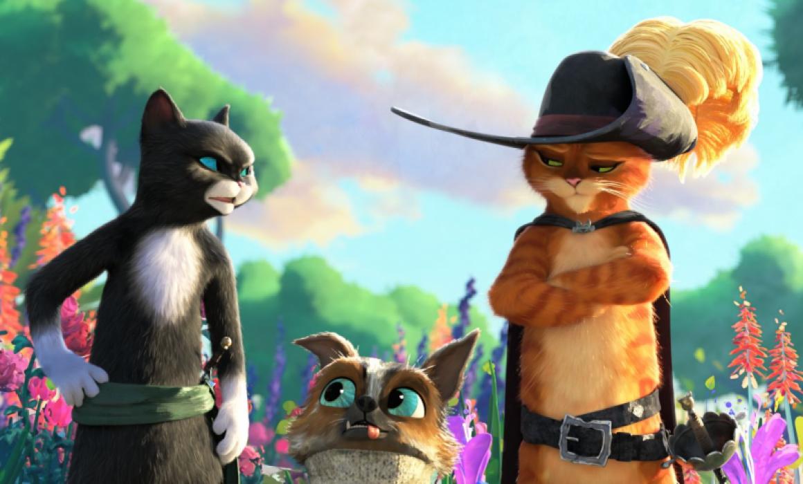Když máte k dispozici devět životů, tak vám na tom, že tu a tam něco odskáčete, vůbec nezáleží, zvlášť když jste legendární hrdina, který se dobrovolně vrhá do těch nejbláznivějších dobrodružství. Kocour v botách právě zachránil obyvatele jednoho městečka před řáděním zuřivého obra, jenže při tom přišel o předposlední ze svých životů. Takové zjištění by zamávalo s mnohem odolnějším charakterem. Kocour se proto rozhodne pověsit boty na hřebík a žít dál v relativním bezpečí kočičího útulku jako obyčejný chlupatý mazlíček. To by ovšem nesměl mít v patách drsnou Zlatovlásku a její tři drsné medvědí parťáky, kteří s ním mají nevyrovnané účty, a také tajemného Vlka, který šermuje jako ďábel (a možná taky ďábel je). Naděje naštěstí umírá poslední – v Kocourově případě má podobu legendární Hvězdy přání, která by mu mohla obnovit ztracené životy. Jenže taková vzácná věc se nesmírně těžko hledá. Kocour v botách musí spolknout hrdost a uzavřít příměří se svou věčnou soupeřkou, kočičí zlodějkou Čiči Pacičkou. Spolu s ní a novým kamarádem Psem, který kdovíproč předstírá, že je kočka, se vydává vstříc pohádkovému dobrodružství, na jehož konci na všechny čeká odměna. Tedy pokud najdou Hvězdu přání jako první.