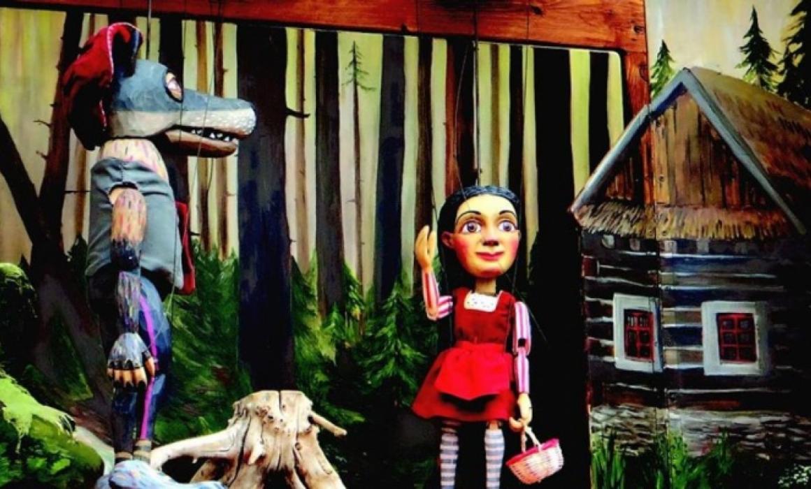 Představení kombinující hru s marionetami, činohru a živě provedené písně