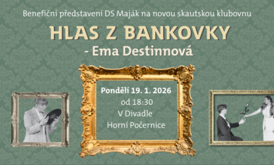 "Výtěžek z představení bude věnován na stavbu nové skautské klubovny v Horních Počernicích. Více o projektu stavby klubovny se dozvíte zde: https://ohen.skauting.cz/nova-klubovna/. Děkujeme, že podporujete dobrou věc!"