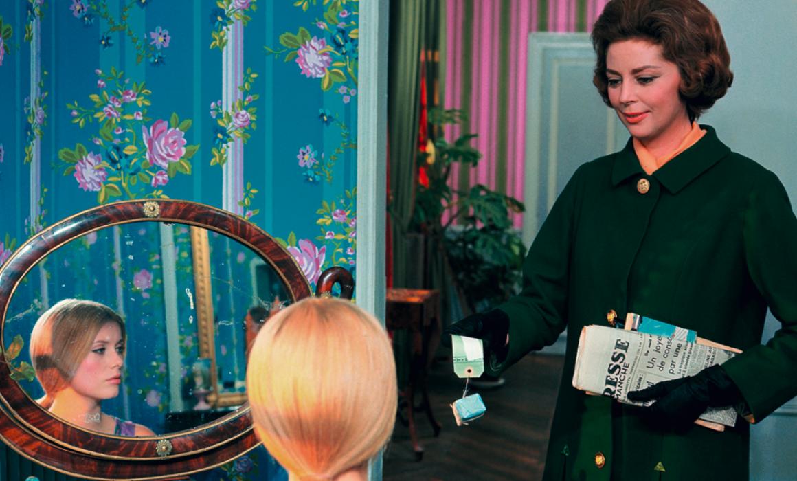 Příběh první lásky mladičké Geneviève a jen o málo staršího automechanika Guye začal svou cestu jako většina snímků francouzské nové vlny jako civilní, černobílý a v exteriérech natočený film. Konzultace s režisérovým stabilním spolupracovníkem, skladatelem Michelem Legrandem, který v materiálu vycítil „hudební rozměr“, však vedla k tomu, že se projekt začal pomalu měnit. Nejprve směrem k jednotlivým hudebním číslům, posléze k rozhodnutí natočit zpívaný celý film. A s expresivní barevností inspirovanou Henrim Matissem.