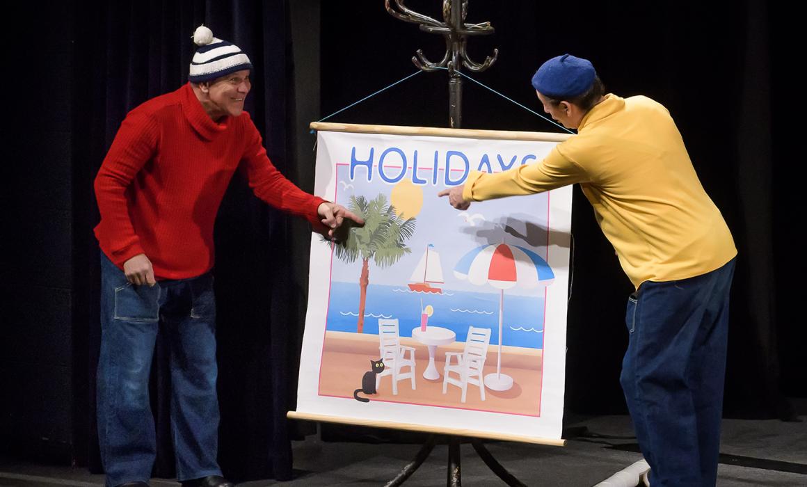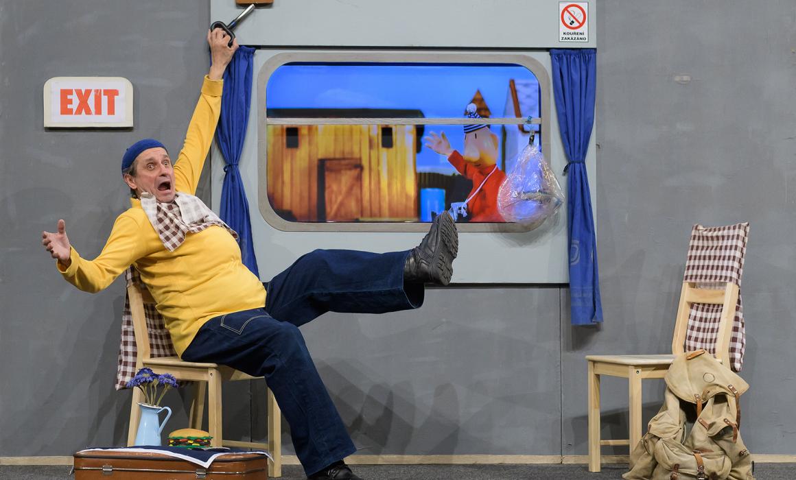 Představení nápaditě spojuje zdánlivě nespojitelné – animovaný loutkový film a hraný projev se živými herci – a vtipně rozvíjí anekdotickou zápletku o tom, jak se dva kutilové vydají na cesty, aby projeli světa kraj, a nakonec beztak zjistili, že doma je to nejlepší. Cestují vlakem, letí letadlem, zamíří do vesmíru, jedou lodí, ocitnou se na mořském dně, kde bojují s děsivým chapadlem, ale když se konečně dostanou do vysněného hotelového pokoje v přímořském letovisku, je jejich jediným zájmem přetvořit neosobní hotelový pokoj tak, aby se co nejvíc podobal jejich domovu.