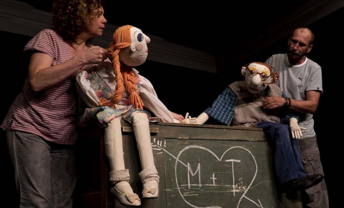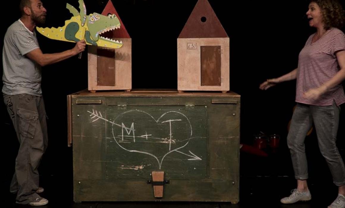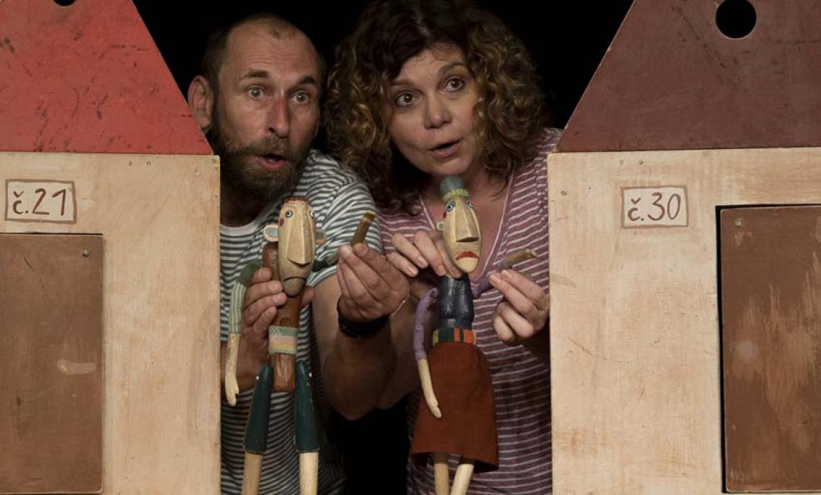 Hrají dva herci, živě, s velkými i malými loutkami a v bohaté výpravě, kde je drak lidožrout, radnice, město, domov, sklep, strašidla i sousedé. A taky dva psi. A všechno je to o tom, že se tatínek a maminka mají rádi, i jejich děti – bratr se setrou, drží spolu, přestože se někdy hádají a perou. A jedině tak se podaří všechna strašidla, nemoci a draky překonat.